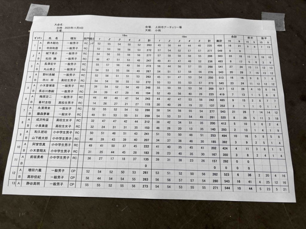 【試合結果】2025年度 第1回長野県室内アーチェリー大会