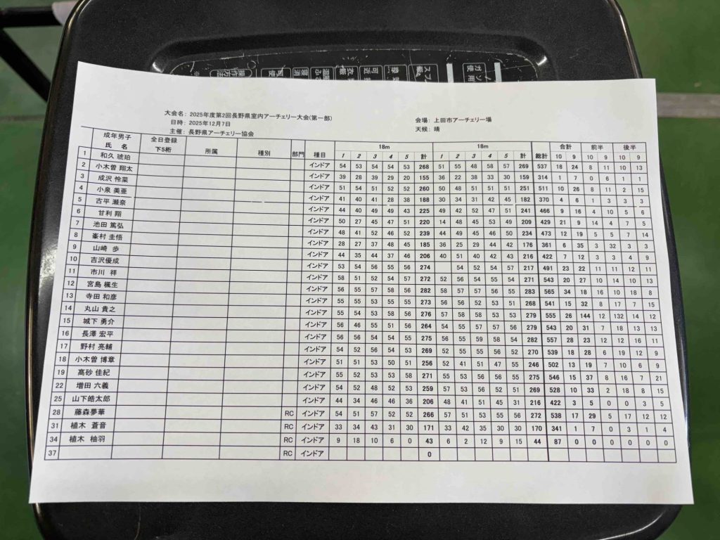 【試合結果】2025年度 第2回長野県室内アーチェリー大会